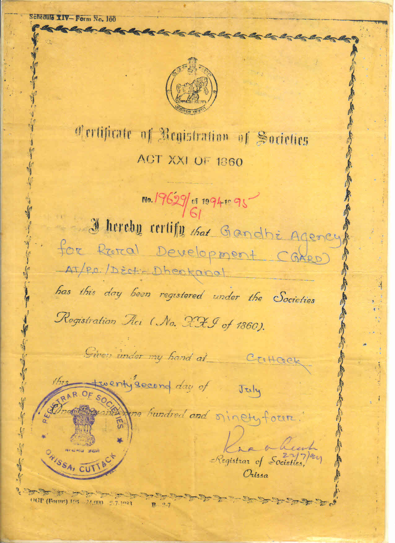 Registration Certificate